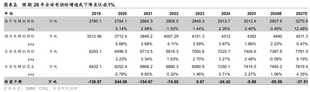 供给:26年全球电解铝供给增速或降至-0.09%